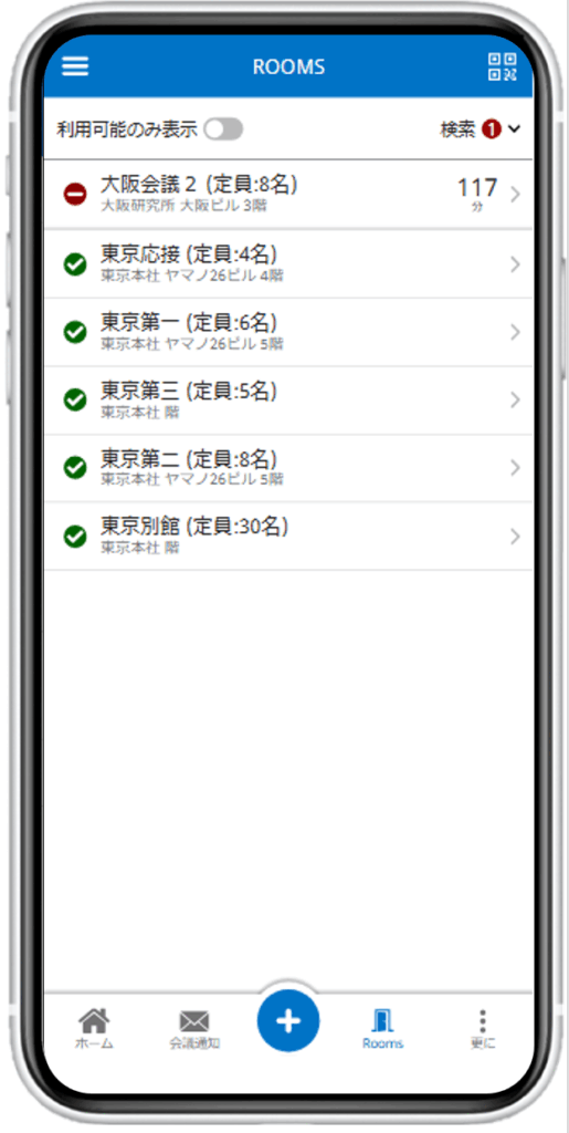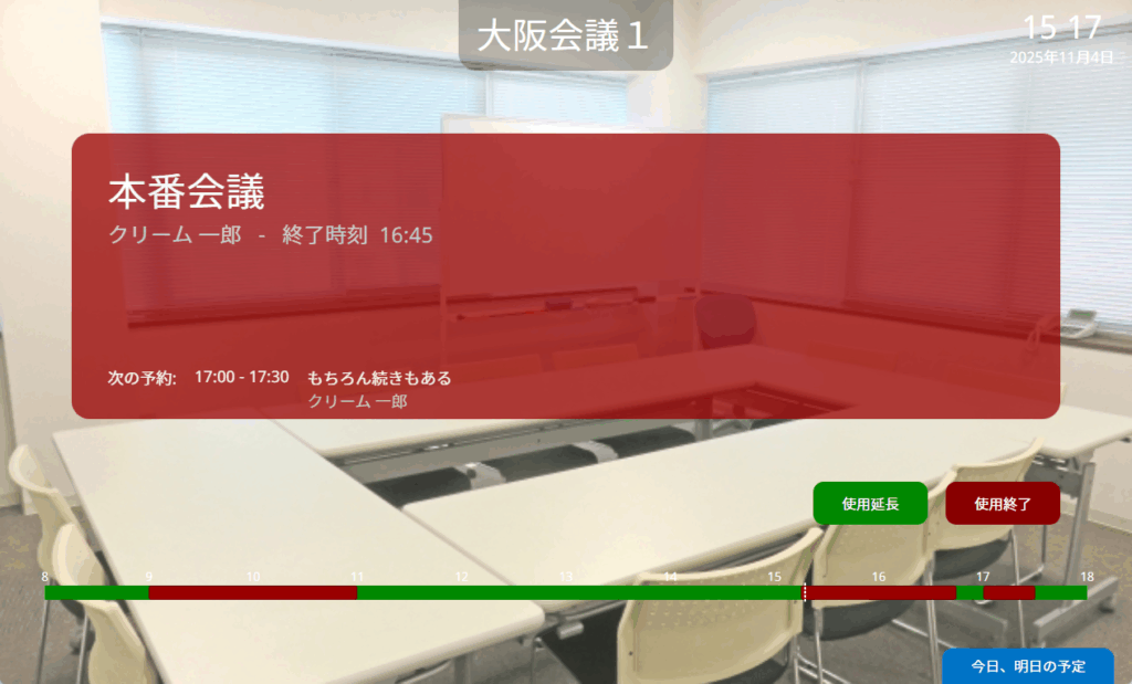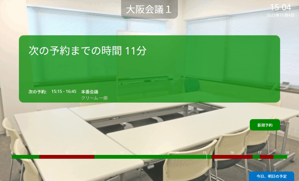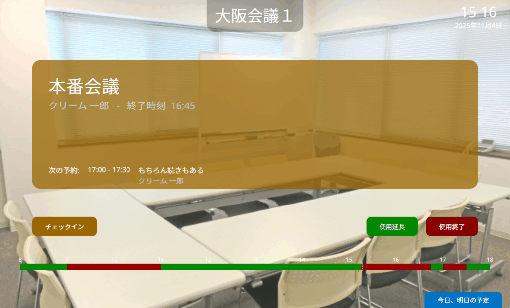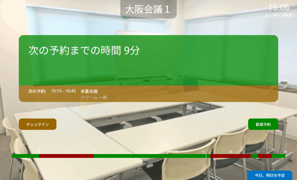 自分たちの予約の直前に予約が入っていなければ会議開始前でもチェックインが出来ます。